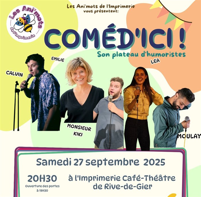 Coméd'ici !, c'est le plateau d'humour, concocté par les Ani'mots de l'Imprimerie, avec des produits de la région, avec au menu :