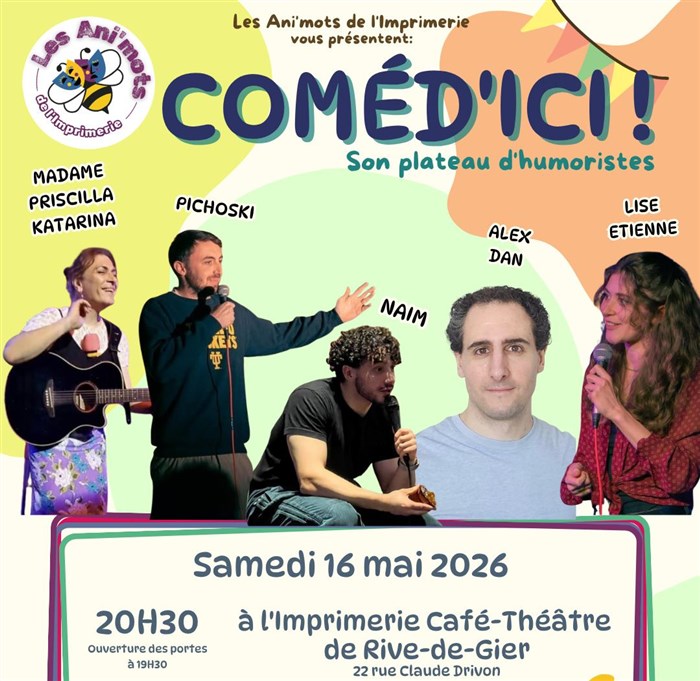 Coméd'ici !, c'est le plateau d'humour, concocté par les Ani'mots de l'Imprimerie, avec des produits de la région, avec au menu :