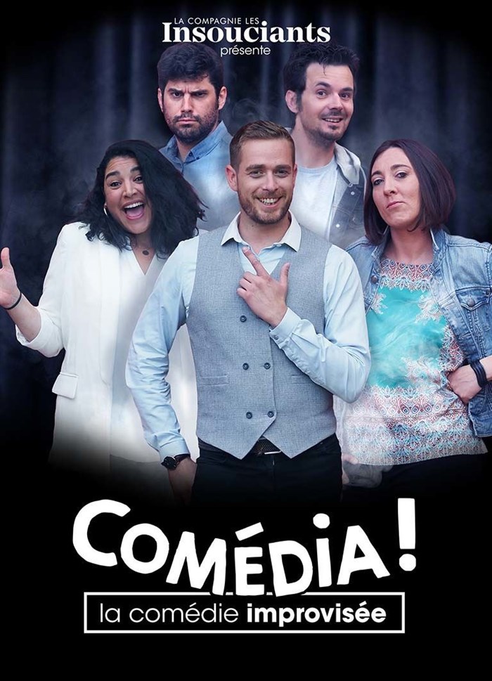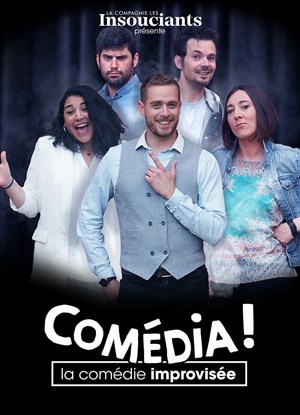 Comédia! est un spectacle d'improvisation inédit, à partir d'éléments choisis par vous, le public, les quatre comédiens et comédiennes imagineront une pièce en plusieurs actes, de la scène d'ouverture au dénouement final !