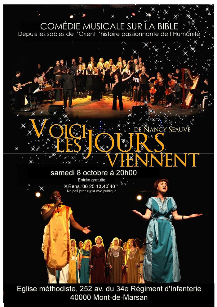 L'Église Évangélique Méthodiste de Mont de Marsan vous invite à une comédie musicale sur la Bible.