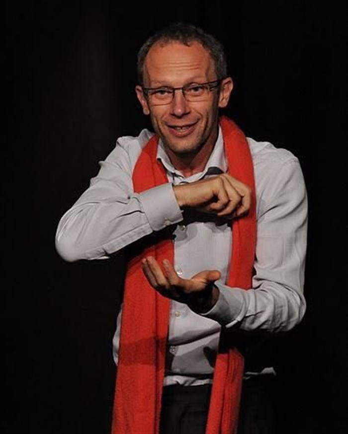 David F a écrit cette pièce et la joue avec beaucoup de panache. Il est comme un poisson dans l'eau