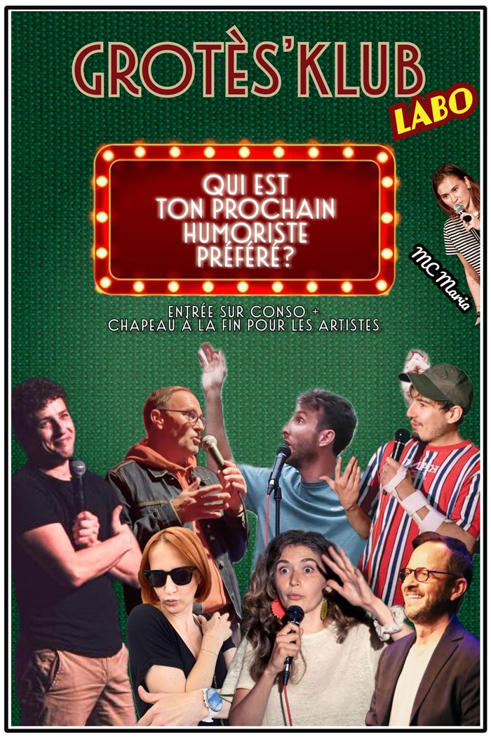 Grotès'Klub Labo : une scène découverte où humoristes débutants et confirmés viennent tester leurs nouvelles blagues.