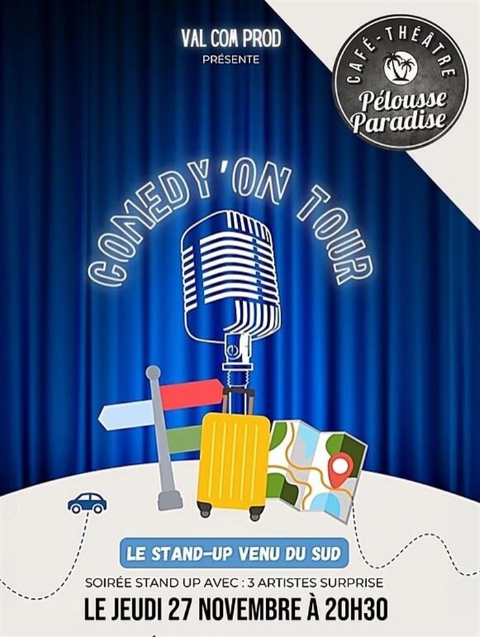 Que tu sois fan de stand-up, amateur de soirées décalées ou simplement curieux de découvrir de nouveaux talents, Comedy'On Tour te garantit un moment explosif et un concentré de rires venu tout droit du Sud !