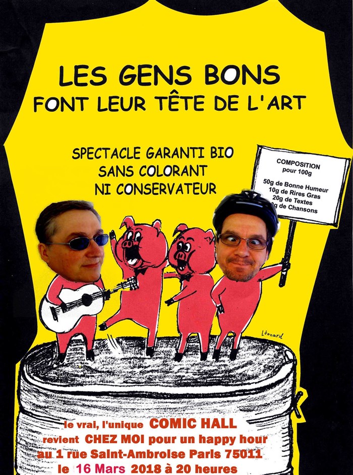50g de bonne humeur, 10g de rire gras, 20g de textes, 20g de chansons.