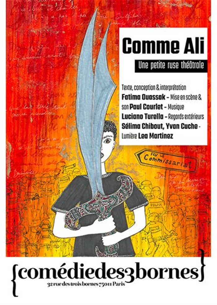 Première pièce de théâtre de l'essayiste et militante Fatima Ouassak, Comme Ali reprend les thèmes qu'elle développe sur la désenfantisation des garçons arabes, leurs horizons émancipateurs, s'inscrivant dans une littérature décoloniale et réparatrice.