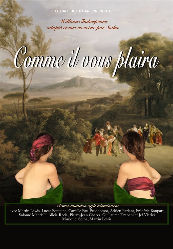 J'ai choisi de monter " Comme il vous plaira " (As you like it) parce que c'est le Shakespeare préféré de Brigitte Fontaine, que je salue.. Et aussi parce qu'en la lisant, j'ai compris que le vrai théâtre vivant est celui des auteurs " disparus ". D'ailleurs, Shakespeare n'est pas mort (si vous en voulez la preuve , venez nous voir)