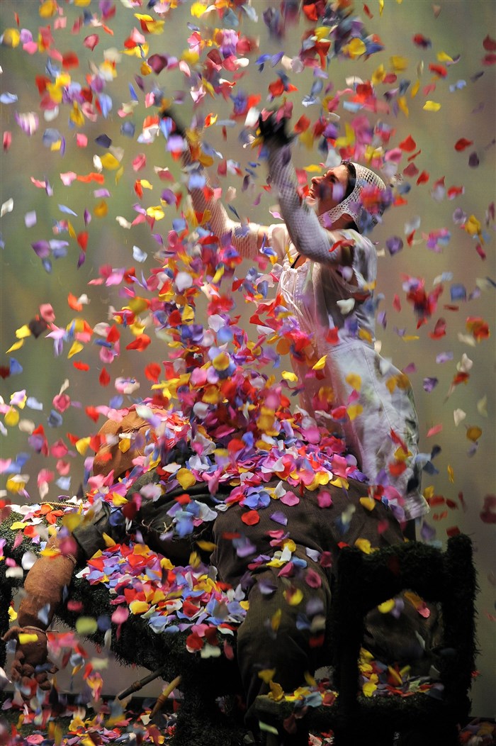 La comédienne, seule en scène, est sur un manège tournant, et donne sa grâce et sa force miraculeuse pour que vive devant nous la petite chèvre, avec son appétit de vivre et son intrépide jeunesse, jusqu'au petit matin qui la fera mourir d'avoir trop aimé le monde.