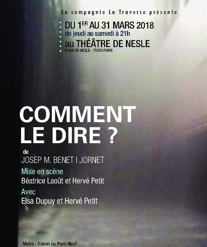 "Comment le dire?" fait partie d'une trilogie de pièces à deux personnages de Josep M. Benet i Jornet, écrites récemment. En 2016 notre compagnie avait déjà créé la 2ème, "Deux femmes qui dansent" au Théâtre de Nesle.