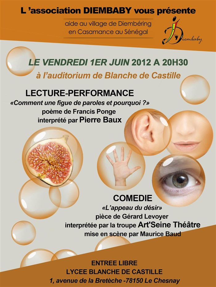 Soirée en 2 parties: Lecture-performence "Comment une figue de paroles et pourquoi?" de Francis Ponge / Comédie : "L'appeau du désir" de Gérard Levoyer.