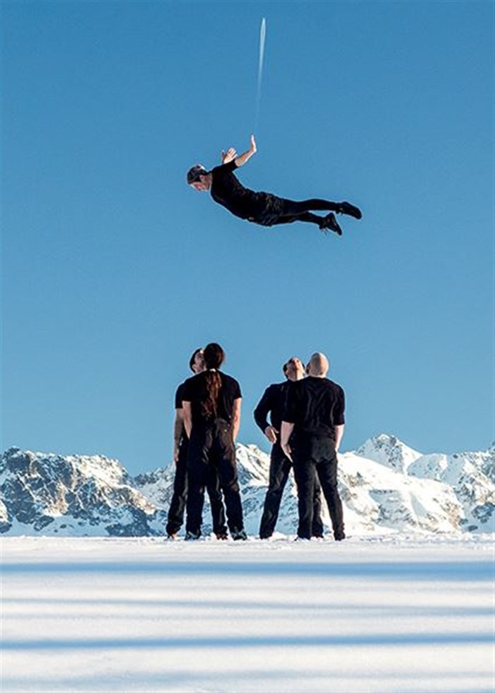 Ça tangue en haut, ça part à droite et les autres attrapent au vol les corps de la colonne qui se défait... Möbius questionne la technique, déroulant un récit d'une beauté impérieuse dans sa fragilité.