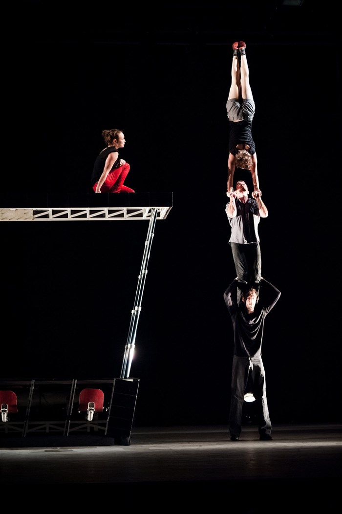 Pièce de théâtre acrobatique, fable humaine et psychologique mêlant le Cirque et le Théâtre, Compte de faits invente un nouveau langage.