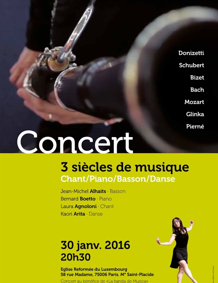 Trois siècles de musique avec des oeuvres pour basson, piano, chant et danse de Donizetti, Schubert, Bizet, Bach, Mozart, Glinka, Pierné