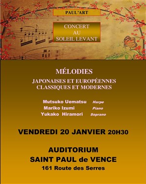 Récital de mélodies japonaises et européennes,anciennes et modernes. La rencontre de 2 cultures qui chantent l'amour, le rêve, la vie.