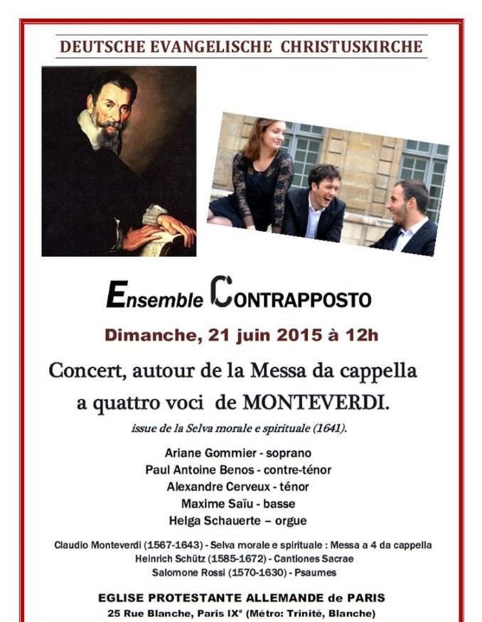 L'Ensemble Contrapposto vous convie à son premier concert à l'Eglise évangélique allemande de Paris