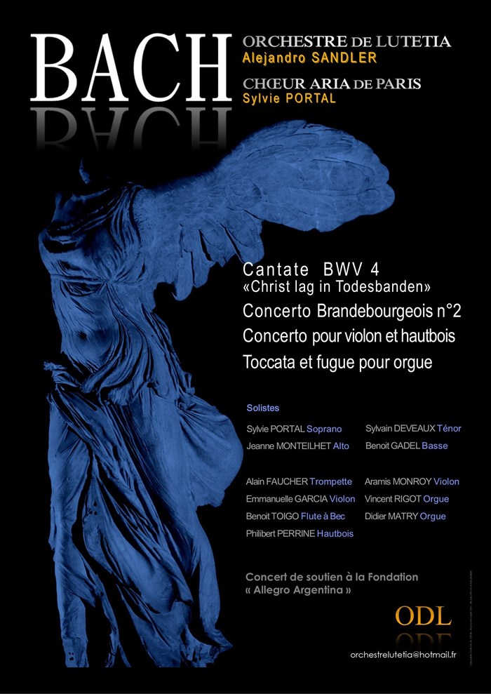 Concert Bach avec l'Orchestre de Lutetia, sous la direction d'Alejandro Sandler, et l'Aria de Paris et son chef de choeur Sylvie Portal.