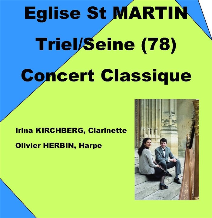 Venez écouter dans la belle église de Triel sur Seine un concert harpe et clarinette.