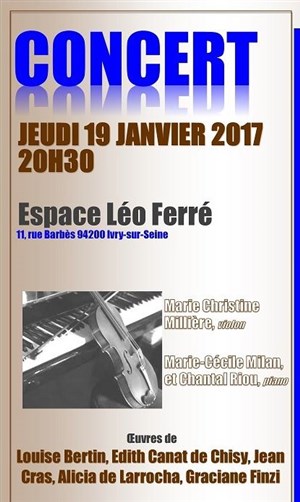 Tu veux savoir ce qu’ont pensé les spectateurs et la presse de cet événement : Concert classique par la violoniste Marie-Christine Millière et les pianistes Marie-Cécile Milan et Chantal Riou - Forum Léo Ferré ? Découvre leurs avis éclairés et prépare-toi à vivre un moment d’exception à ton tour en réservant tes places !