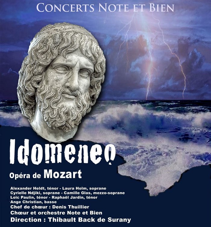Au programme, Idomeneo de W-A. MOZART sous la direction de Thibault Back de Surany, avec Alexander Heldt, ténor, Camille Glas, mezzo-soprane, Laura Holm, Cyrielle Ndjiki, sopranes, Raphaël Jardin, Loïc Paulin, ténors, Ange Christian, basse.