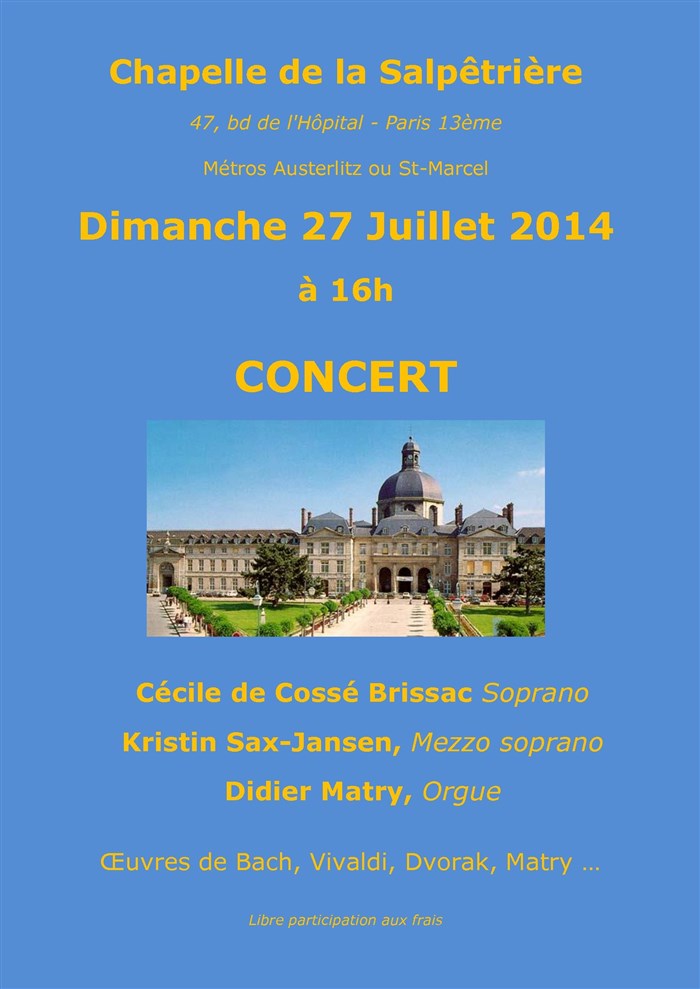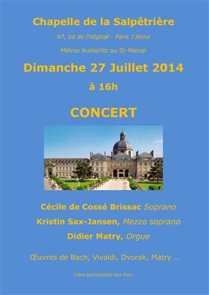 L’événement Concert d'été, voix et orgue, à la Salpêtrière de type Musique Sacrée, organisé ici :