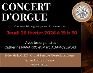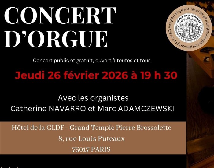 Découvre Concert d'orgue à 4 mains, qui fait partie de notre sélection d’événements de type Concerts et qui se tient ici : Grande Loge de France - Pierre Brossolette -