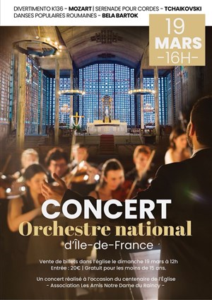 L’événement Concert de l'Orchestre national d'île de France de type Musique classique, organisé ici : Eglise Notre-Dame du Raincy - Le Raincy, n'est plus disponible à la vente.