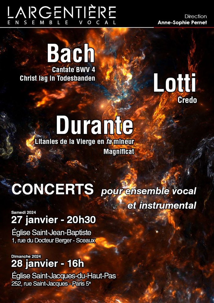 L'Ensemble vocal Largentière, dirigé par Anne-Sophie Pernet, vous propose de (re)-découvrir les oeuvres de trois compositeurs ayant pour dénominateur commun d'avoir effectué un séjour plus ou moins long à la cour de Saxe.