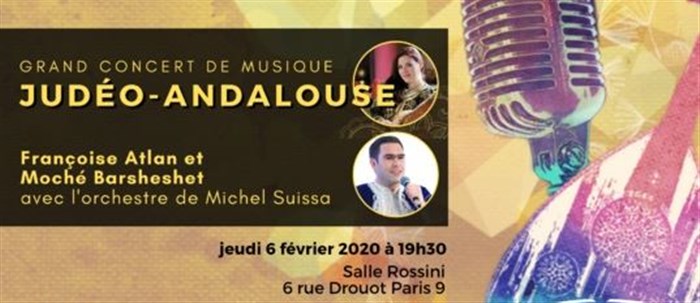 Grande soirée Judéo-andalouse, avec les artistes Françoise Atlan et Moshe Barsheshet, jeudi 6 février 2020 à 19h30 à la Salle Rossini