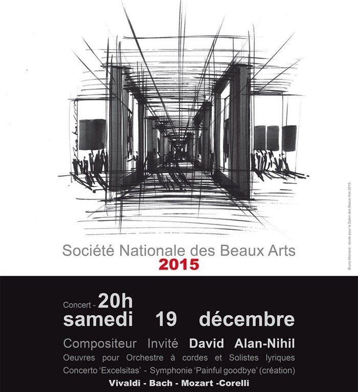 C est au Carrousel du Louvre que nous avons assisté à ce concert de très haute volée avec le compositeur David Àlan - Nihil ,le Collégium Musicum de versailles,Stéphane Rullière(violon solo),Marie Saadi(merveilleuse soprane),Marika Lombardi (hautbois),sous la direction de Daniel Dato...Un pur moment de grâce sous" les caresses des archets" et si, comme certains, vous pensez"il n y a plus d'saisons",le concerto(extrait) n°4 et le concerto n°2(extrait), vous auraient fait l été au plein coeur de l hiver.Pour parachever la magie de Noel,un tableau tactile mural, d une poésie rare apporta la touche finale à mon enchantement(dans le cadre de l exo de la SNBA).Enfin et en guise d apothéose,une déambulation dans les couloirs du Carrousel ou ne résonnait que le silence et ou s offrait à notr regard, la vision céleste et épure d un vide rempli de sons divins!"Excelsitas " à tous et pour tous!