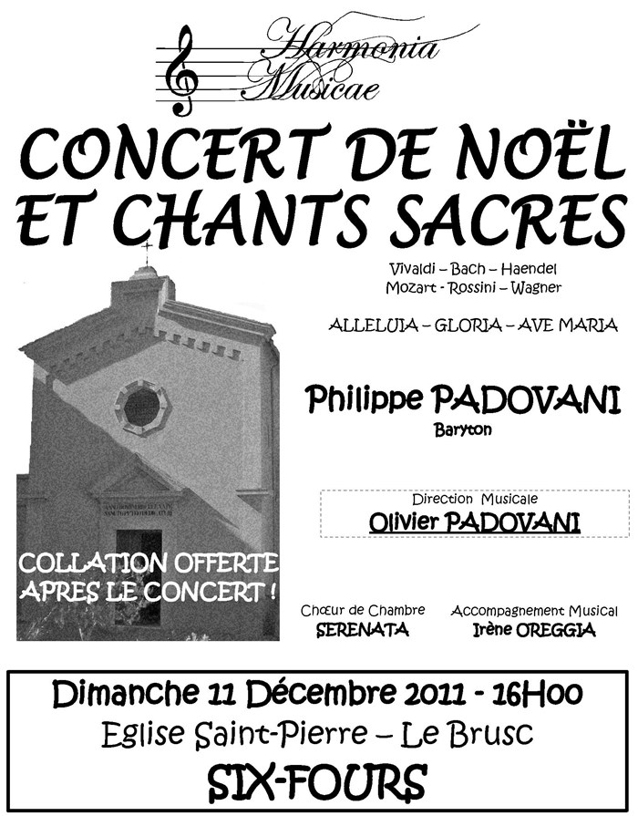 Ces airs,interprétés par le bartyon Philippe Padovani et l'Ensemble Vocal Serenata seront accompagnés au piano par Irène Oreggia et présentés et dirigés par Olivier Padovani.