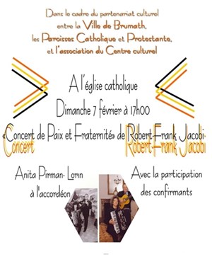 Il nous ramènera vers nos profondes racines avec fierté, identité régionale, amour du terroir, croyance et ouverture d'esprit. A travers ses chansons, Robert-Frank Jacobi offrira un moment de bonheur à tous ceux qui aiment rêver et sentir battre le coeur de l'Alsace. Accompagné à l'accordéon par Anita Pirman, qui par sa finesse et sa subtilité colore avec sensibilité les chansons. Les confirmants se joindront à ce moment musical par leur participation au final.