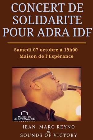 La Maison de l'Espérance donnera un concert de solidarité et de soutien avec la participation exceptionnelle de Jean-Marc Reyno & Sounds of Victory. Tout l'argent récolté sera destiné pour ADRA IDF avec l'objectif de venir en aide aux populations des îles de Saint-Barthélémy et Saint-Martin dévastées par l'ouragan Irma.