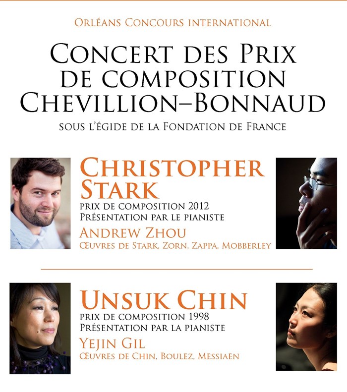 Depuis 1998, Orléans Concours International et la Fondation Chevillion-Bonnaud (sous l'égide de la Fondation de France) décernent un prix de composition. Cet évènement est l'occasion de consacrer les premier et dernier lauréats à avoir reçu cette distinction très prestigieuse : Unsuk Chin (Corée du Sud) en 1998 et Christopher Stark (Etats-Unis) e 2012.