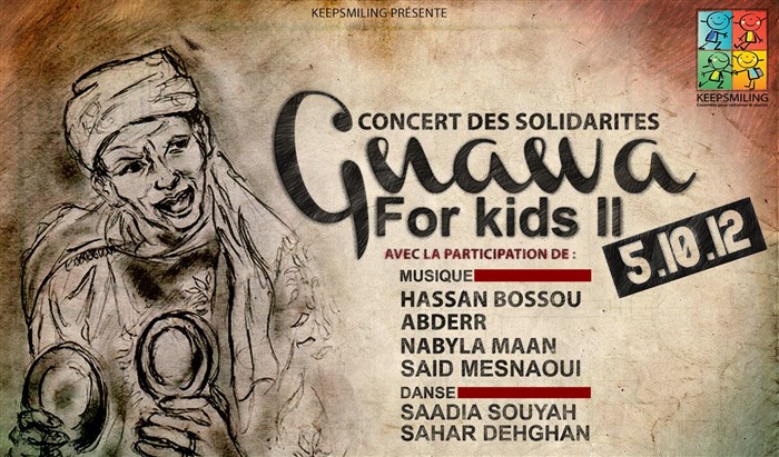 Forte du succès de la première édition et dans le cadre de ses actions au profit des enfants en situation de rue au Maroc initiées depuis 2005, l'association KeepSmiling organise une grande soirée festive et caritative Le Concert des Solidarités 2 - Gnawa For Kids !