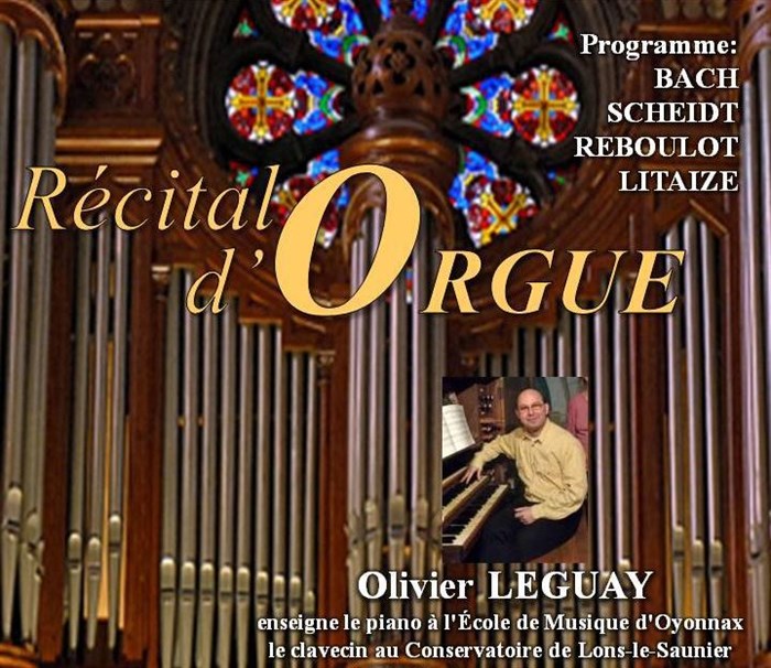 Récital d'Orgue par Olivier Leguay enseigne le piano à l'École de Musique d'Oyonnax et le clavecin au Conservatoire de Lons-le-Saunier.