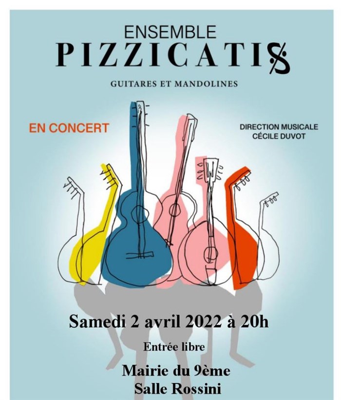 L'orchestre à plectre (mandolines, mandoles, guitares, contrebasse) Pizzicatis donnera un concert le samedi 2 avril 20h.