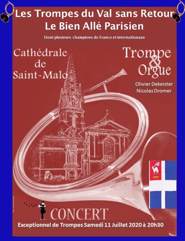 Venez vibrer au son des trompes et de l'orgue dans notre belle Cathédrale de Saint- Malo ! Concert assuré par deux groupes de renom.