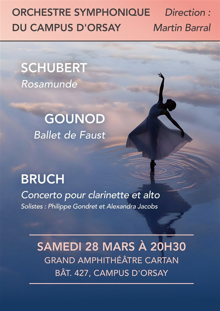 Découvre Gounod / Bruch / Schubert, qui fait partie de notre sélection d’événements de type Musique classique et qui se tient ici : Grand amphithéâtre Henri Cartan du Campus d'Orsay -