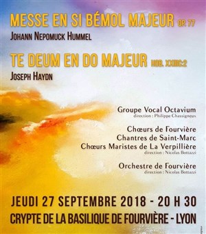 Concert donné par le choeur Octavium de Saint Symphorien d'Ozon (direction Philippe Chassigneux), les choeurs de Fourvière, les choeurs de la Verpillère (direction Nicolas Bottazzi) et 30 musiciens de l'orchestre de Fourvière qui interpréteront aussi la Symphonie n°82 " L'Ours " de Haydn.