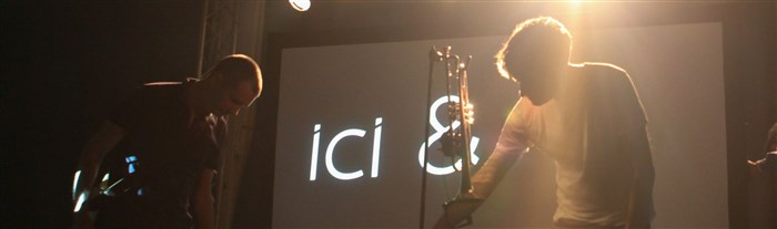 Ici & lui. Ce duo guitare-trompette a de quoi étonner puisqu'il crée, à l'aide d'un vidéo projecteur et d'un sampler, un live electro dansant.