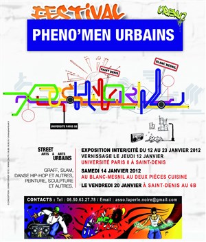 1ere édition du festival organisé par l'association La Perle Noire en Seine-Saint-Denis, " Phéno'Men Urbains " fait la promotion des cultures urbaines par le biais de pratiques artistiques encore peu affirmées ou reconnues.