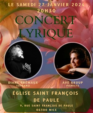 Concert lyrique d'une heure avec la soprano Diane Frémaux et la pianiste Ave kruup avec