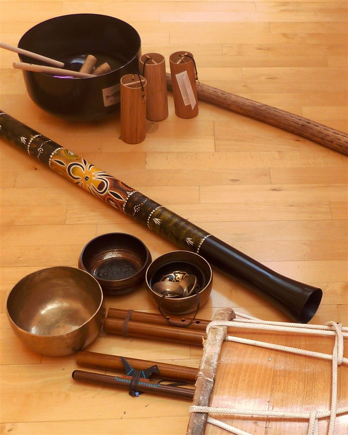 1 heure pour méditer en groupe. Le concert est fondé sur le jeu d'instruments (bols chantants, flûtes, didgeridoo, tambour chamanique...) qui évoquent la terre, l'eau, l'air...