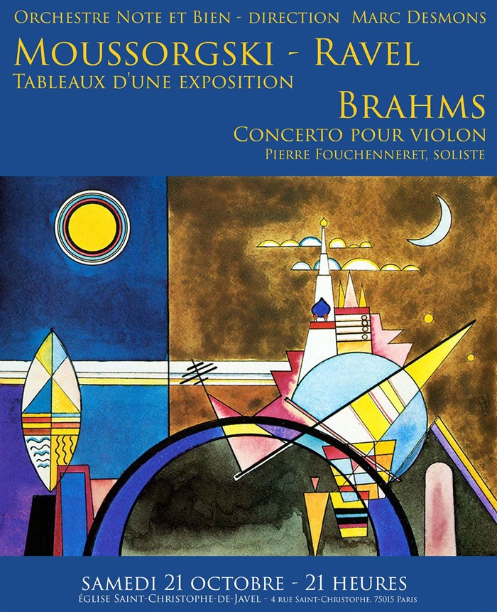 Au programme de cette soirée : Les Tableaux d'une exposition de Moussorgski, Le Concerto pour violon et orchestre de Brahms.