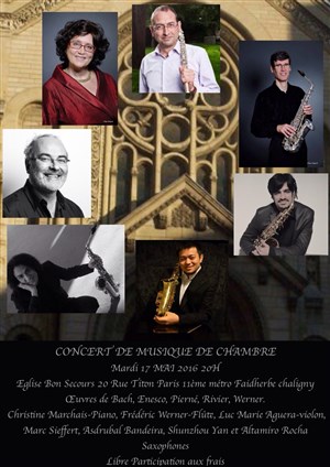 JS.Bach, G.Enesco, J.Rivier, G.Pierne, JJ.Werner pour flûte, violon, piano et quatuor de saxophones.