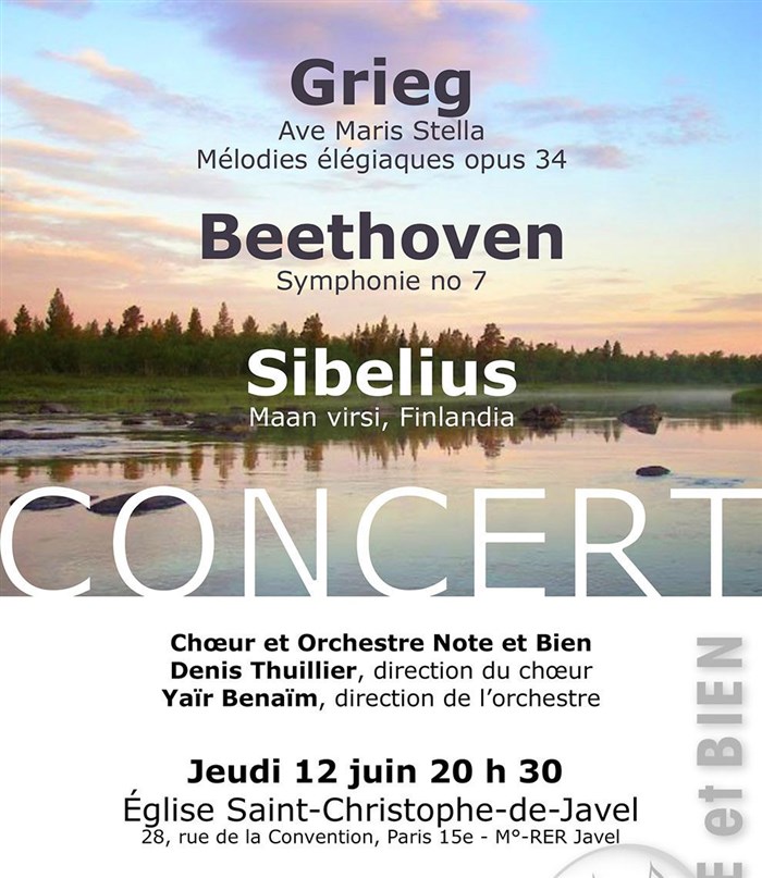 Au programme ce soir, Ave Maris Stella et les mélodies élégiaques op.34 de Grieg ; la symphonie n°7 de Beethoven ; Maan virsi et Finlandia de Sibélius