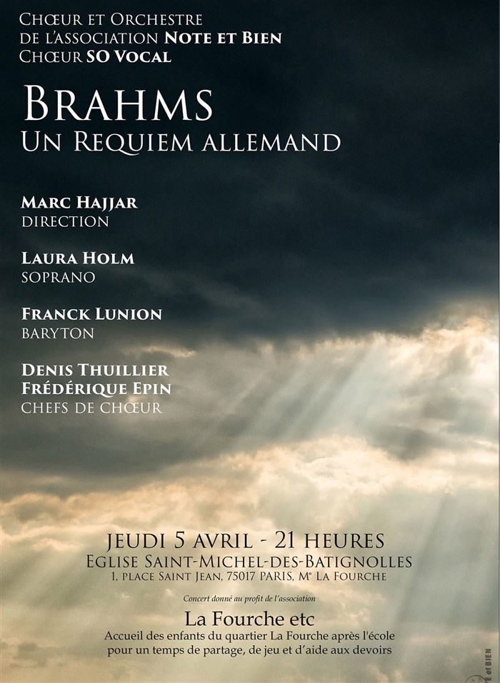 Au programme, Un Requiem Allemand de Brahms avec Laura Holm, Franck Lunion, sous la direction de Marc Hajjar.