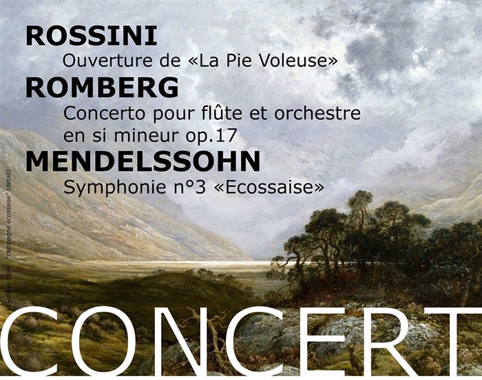 Au programme de la soirée, sous la baguette de Vicens Prats, l'ouverture de la Pie voleuse de Rossini, le concerto pour flûte en si m. op.17 de Romberg avec Boris Grelier et la Symphonie n°3 de Mendelssohn.