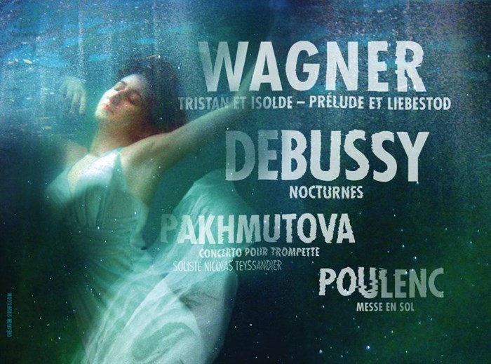Passionné avec le prélude et la liebestod extrait de l'opéra de Tristan et Isolde de Wagner, contemplatif avec la messe en sol de Poulenc, brillant avec le concerto pour trompette de la compositrice russe Pakhmutova, impressionniste avec les trois nocturnes (Nuages, Fêtes et Sirènes) de Debussy, tout est réuni pour un grand voyage musical.
