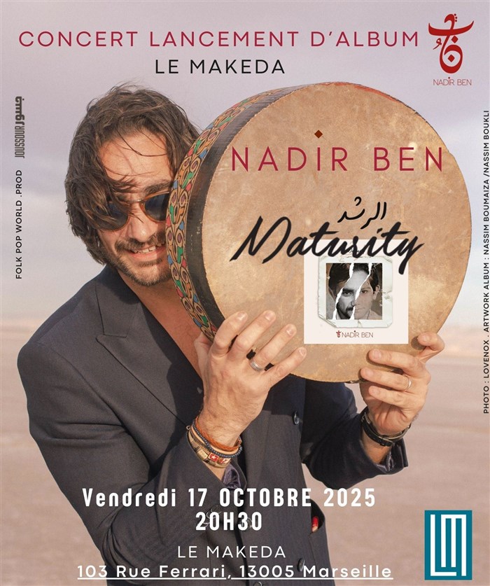Nadir Ben célèbre la sortie de son 1er album "Maturity/Al Roshd", entre folk, groove nord-africain et poésie méditerranéenne.