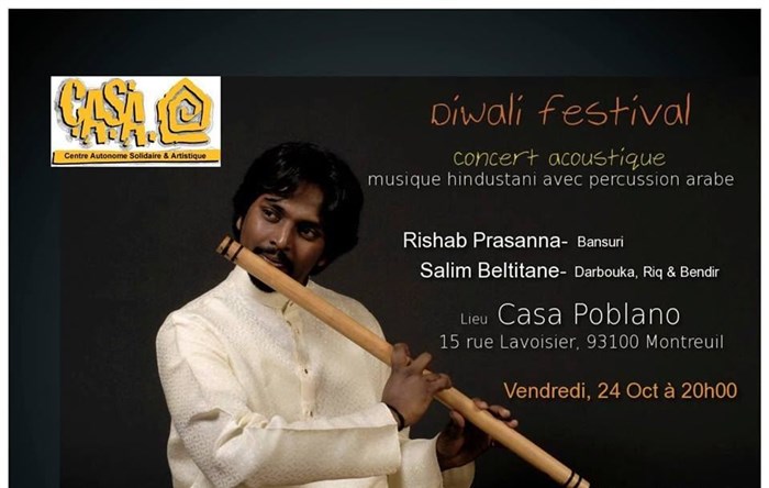 Concert de Rishab Prasanna (à la croisée des flutes indiennes et des percussions arabes). Concert en l'honneur de la fête des lumières..